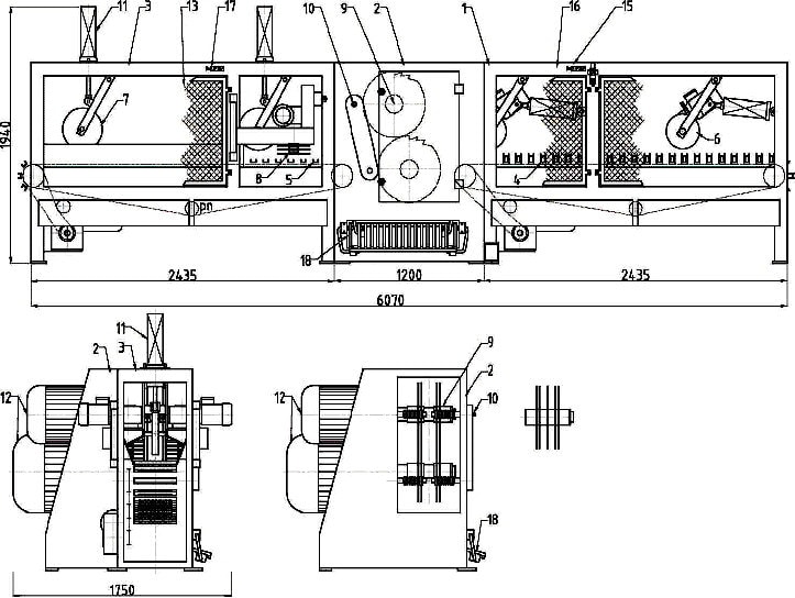 После распиливания брус, подается на отдельно выведенный отбирающий рольганг, а доски и горбыль отдельно падают на рольганг или ленточный транспортёр.