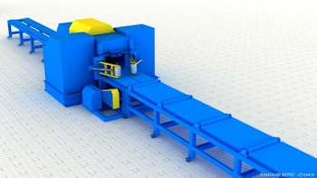 Материал с рольганга непрерывно отбирается гусеничным конвеером.