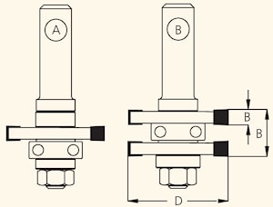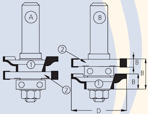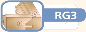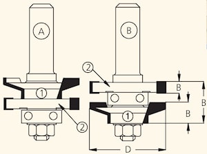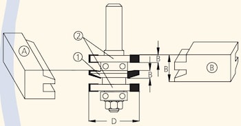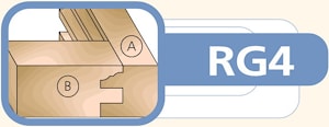 Все концевые фрезы серии RG состоят из комплекта: оправка, две фрезы и двух ведущих подшипников. Обе части соединения A и B (профиль-контрпрофиль) фрезеруются с использованием одной оправки путем изменения порядка набора фрез.