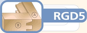 Комплект фрез серии RGD5 состоит из оправки с гайкой NHRG822 или 5, одной профильной фрезы, двух пазовых фрез и ведущих подшипников. Достаточно один раз собрать фрезу и путем изменения высоты относительно обрабатываемой заготовки, фрезеровать обе части соединения профиль и контрпрофиль A и B.
