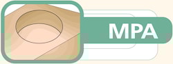 Чашечное сверло серии MPA позволяет получать глухие отверстия различных диаметров. Сверло имеет одну закрепленную твердосплавную пластину с направляющим центром и другую с возможностью регулировки. Сверло используется для стационарных сверлильных станков. Максимальная частота вращения не должна превышать 1500 об/мин.