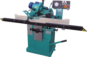 Заточка передней и задней поверхностей зуба происходит без снятия пилы что повышает производительность станка. Заточка задней поверхности зуба в форме трапеции происходит в один прием, заточная головка поворачивается на заданный угол, а задняя поверхность автоматически занижается на установленную высоту (например на 0,2мм).