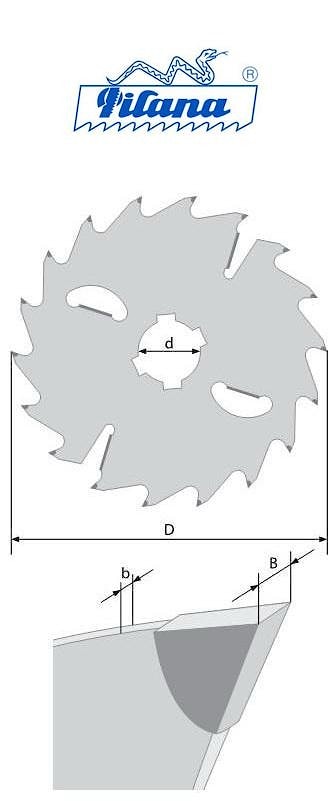 Параметры дисковых пил | D, мм | d, мм | b, мм | B, мм | z, шт. + нож | Материал зуба |