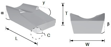 | L (мм) | W (мм) | T (мм) | α (°) | β (°) | ƴ (°) | r (мм) | Угол фаски (°) |