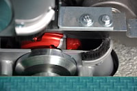 Торцовочный узел кромкооблицовочного станка MINIPROF AUTOMATIC представляет собой гильотину способную рубить кромку толщиной до 3 мм. Опрыскивание торцовочных ножей исключает налипание клея. В станке предусмотрен специальный сборник для обрезки кромки.