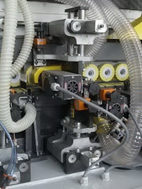 Современная конструкция узла нанесения клея позволяет плавно регулировать толщину наносимого слоя в процессе работы станка.