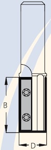 Фрезы концевые обгонные со сменными твердосплавными пластинами серии FMКонцевые обгонные фрезы со сменными пластинами серии FM предназначены для обработки деталей имеющую облицовку - ДСП, МДФ и аналогичный материал. На торце концевой фрезы установлен направляющий подшипник.